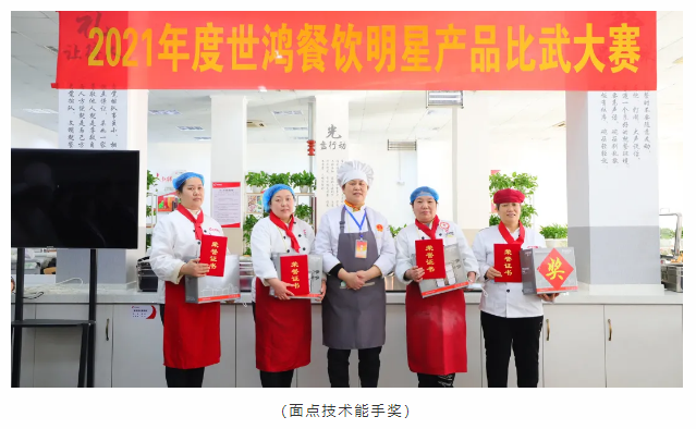 厨艺比赛分为热菜组和面点组两项比赛,每位选手都是精心准备、认真制作,激烈对决,缤纷呈现,将这一年的努力付出和用心态度都带入参赛作品中。经过评委们严谨认真的评审后最终评选出热菜组和面点组的前三名和技术能手奖。颁奖环节是最令人激动的环节,每一位获奖者由颁奖嘉宾用鲜花邀请至主席台,现场尽是大家热情的祝贺和掌声,充满仪式感的颁奖环节令世鸿的家人们开心而感动。大赛是对各项目厨艺基本功的检验,同时利用这个平台可以使大家相互取长补短,厨艺技能得以提升。新的一年,V体育将紧跟时代步伐,不断推陈出新。做高品质团餐,更好的服务于社会。